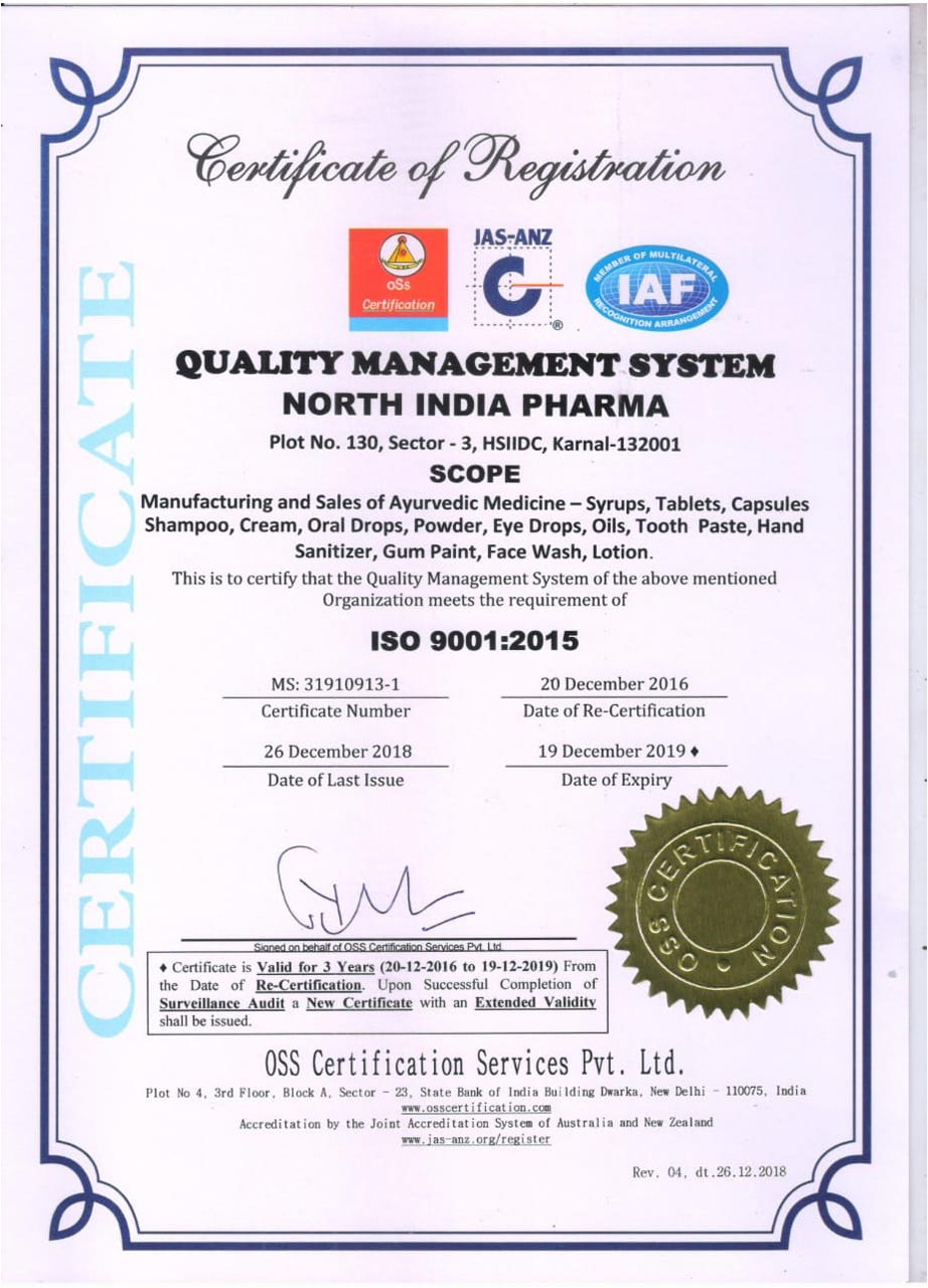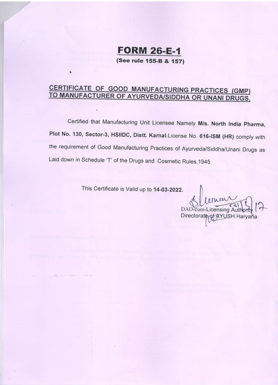 • GMP Certified - All our herbal ingredients are tested in GMP lab & certified by Ministry of Ayush.